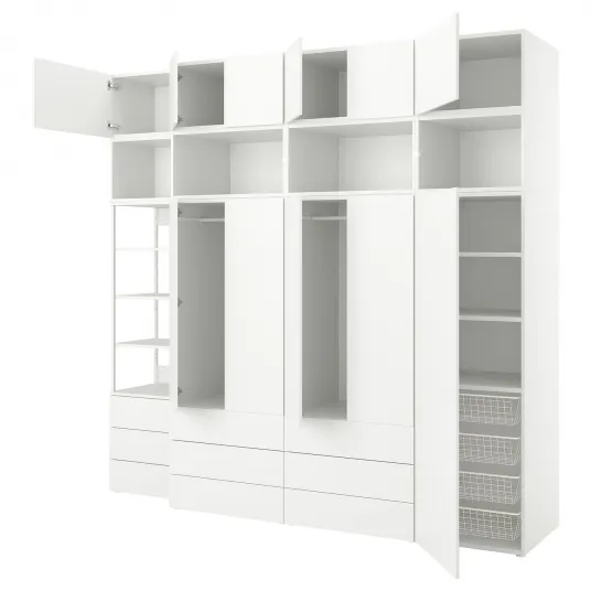 Dulapul IKEA PLATSA este echipat cu 11 usi si 9 sertare spatioase, oferind spatiu suficient pentru toate hainele, accesoriile si articolele de uz casnic. Designul versatil va permite sa personalizati aspectul interior in functie de nevoile dvs., facandu-l perfect pentru organizarea articolelor de imbracaminte, pantofi si chiar articole voluminoase, cum ar fi lenjeria de pat sau imbracamintea de sezon.