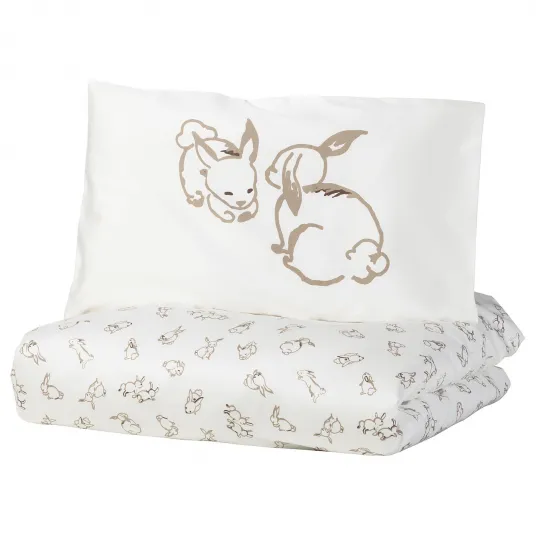 IKEA RÖDHAKE Husa pilota+1 fata perna patut, model iepuras/alb/bej, 110x125/35x55 cm