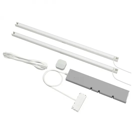 IKEA SKYDRAG / TRÅDFRI Set iluminat, albCu aceasta bagheta luminoasa LED ai o lumina functionala si o atmosfera placuta in bucataria ta ENHET - gatitul este mai placut, mai sigur si mai usor., Poti folosi bagheta luminoasa sub corpurile suspendate si cadrele suspendate deschise ENHET ca iluminat pentru lucru - sau foloseste-o pentru a crea o lumina placuta in cadrele deschise., Daca conectezi bagheta luminoasa la transformatorul si dispozitivul de reglare a intensitatii TRГ…DFRI, poti aprinde, stinge si regla lumina dupa cum este necesar., Acest produs face parte din gama noastra pentru o casa inteligenta. Conecteaza-l, impreuna cu alte produse inteligente, la hub-ul DIRIGERA si aplicatia IKEA Home smart pentru mai multe caracteristici si functii., Completeaza cu transformatorul LED TRГ…DFRI si regulatorul wireless RODRET; se vand separat., LED integrat., Becul are o durata de viata de aproximativ 25.000 de ore. Aceasta inseamna ca becul poate functiona 20 ani daca lampa este aprinsa 3 ore pe zi., Poate fi necesara gestionarea speciala a deseurilor. Contacteaza autoritatile locale pentru mai multe informatii., Functioneaza cu IKEA Home smart., Indice de redare a culorilor (IRC): >90., Culoarea luminii: alb cald (2700 Kelvin)., Include: 1 transformator control wireless (30W), 1 cablu alimentare, 1 potentiometru wireless si 2 baghete luminoase alb (60 cm)., O lumina intermitenta indica depasirea puterii maxime a driverului LED., Dispozitivul de reglare a intensitatii luminii are o raza de actiune de 10 metri cand nu este blocat de pereti., Cu regulatorul wireless RODRET poti regla intensitatea luminii fara o instalatie fixa., Tensiune de alimentare: 220-240V., Cu magnet; dispozitivul de reglare a intensitatii se fixeaza usor de consola de perete sau de alte suprafete metalice.701517027701517027