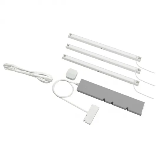 IKEA SKYDRAG / TRÅDFRI Set iluminat, albCu aceasta bagheta luminoasa LED ai o lumina functionala si o atmosfera placuta in bucataria ta ENHET - gatitul este mai placut, mai sigur si mai usor., Poti folosi bagheta luminoasa sub corpurile suspendate si cadrele suspendate deschise ENHET ca iluminat pentru lucru - sau foloseste-o pentru a crea o lumina placuta in cadrele deschise., Daca conectezi bagheta luminoasa la transformatorul si dispozitivul de reglare a intensitatii TRГ…DFRI, poti aprinde, stinge si regla lumina dupa cum este necesar., Cu controlul wireless TRГ…DFRI poti regla intensitatea luminii fara o instalatie fixa., O lumina intermitenta indica depasirea puterii maxime a driverului LED., Dispozitivul de reglare a intensitatii luminii are o raza de actiune de 10 metri cand nu este blocat de pereti., Tensiune de alimentare: 220-240V., Cu magnet; dispozitivul de reglare a intensitatii se fixeaza usor de consola de perete sau de alte suprafete metalice., Functioneaza cu IKEA Home smart., Indice de redare a culorilor (IRC): >90., LED integrat., Culoarea luminii: alb cald (2700 Kelvin)., Becul are o durata de viata de aproximativ 25.000 de ore. Aceasta inseamna ca becul poate functiona 20 ani daca lampa este aprinsa 3 ore pe zi., Include: 1 transformator control wireless (30W), 1 cablu alimentare, 1 potentiometru wireless si 3 baghete luminoase alb (40 cm)., Poate fi necesara gestionarea speciala a deseurilor. Contacteaza autoritatile locale pentru mai multe informatii., Acest produs face parte din gama noastra pentru o casa inteligenta. Conecteaza-l, impreuna cu alte produse inteligente, la hub-ul DIRIGERA si aplicatia IKEA Home smart pentru mai multe caracteristici si functii.701515720701515720