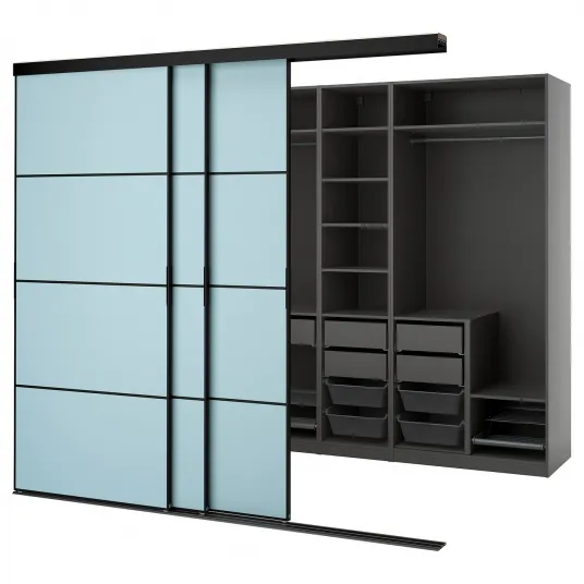 IKEA SKYTTA / PAX Dressing cu usi glisante, negru gri inchis/Mehamn bleu, 276x160x240 cm