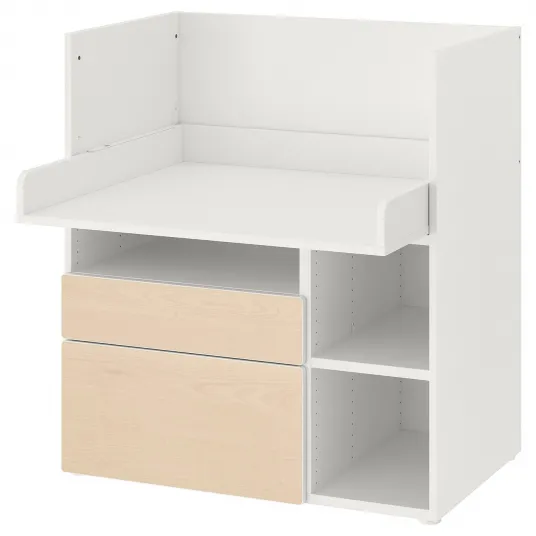 IKEA SMÅSTAD Birou, alb mesteacan/cu 2 sertare, 90x79x100 cmAcest birou multifunctional se poate folosi si ca masa de infasat., Sertarele si politele asigura spatiu practic de depozitare., Pentru a ecoomisi resursele naturale si a folosi cat mai mult din arbori, am folosit resturi de cherestea si lemn in placile aglomerate pentru SMÅSTAD., Peretii construiti din materiale diferite necesita diferite dispozitive de fixare. Suruburile incluse sunt potrivite pentru lemn si diblurile pot fi folosite pentru ipsos, beton si zidarie. Foloseste-le pe cele potrivite pentru peretii casei tale., Manerele se vand separat., Se completeaza cu suportul pentru etichete HÄNGIG pentru a pastra lucrurile si a le gasi usor. Se vinde separat., Completeaza cu una dintre cutiile din departamentul IKEA pentru copii pentru a organiza interiorul mobilierului de depozitare sau politele deschise. Se vand separat.223165651223165651