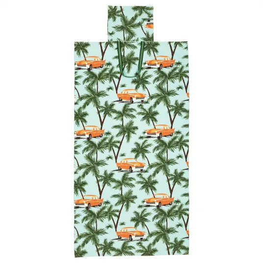 IKEA SOLBLEKT Prosop plaja cu sac, model palmier/masina albastru 100x180 cm