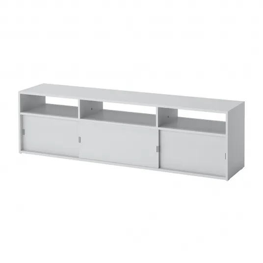 IKEA SPIKSMED Comoda TV, gri, 155x32x44 cmO comoda TV usor de amplasat, cu linii simple, si depozitare deschisa si inchisa deopotriva., Usile glisante iti permit sa asezi depozitarea unde ai nevoie si sa te bucuri de un spatiu mai mare pentru ca usile nu se deschid pe podea., Depozitarea deschisa este ideala pentru accesorii electronice sau articole indragite pe care vrei sa le expui. De asemenea, poti organiza si adapta spatiile de depozitare in functie de nevoile tale adaugand cutii., Poti ascunde cu usurinta cablurile in spatele comodei TV:, Foloseste o comoda TV mai lata decat televizorul. Aceasta comoda este potrivita pentru un televizor cu diagonala maxima 60 inchi. Poti alege un televizor mai mare daca nu este mai greu decat sarcina maxima specificata pentru partea superioara a comodei., Panoul superior al comodei TV este potrivit pentru un televizor cu greutatea maxima de 25 kg.223165696223165696