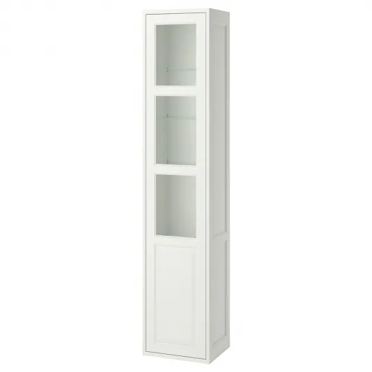 IKEA TÄNNFORSEN Corp inalt cu usi, alb, 40x35x195 cmAcest corp iti ofera spatiu de depozitare la vedere, dar si ascuns, deoarece usa are sticla transparenta in partea superioara si un panou in partea de jos., Usa din sticla creeaza impresia de spatiu si pastreaza obiectele departe de praf, dar in acelasi timp la vedere., Datorita balamalelor cu amortizor integrat, usa se inchide incet, usor si silentios., Usa se poate monta cu deschiderea spre stanga sau spre dreapta., Adauga un maner cu forma preferata pentru a crea o solutie perfecta pe gustul si in stilul tau. Se vand separat., Acest corp trebuie montat pe perete. Vei crea impresia de spatiu si vei curata mai usor pardoseala de dedesubt. Mai mult, in functie de aspectul pe care il preferi, poti alege sa montezi un set de picioare., Include o sina de suspendare pentru montarea cu usurinta a corpului pe perete. Fixeaza sina pe perete, apoi agata si asigura corpul pe sina., Combina cu alte corpuri din familia TÄNNFORSEN pentru a obtine o solutie coordonata pentru baie, perfect adaptata spatiului si nevoilor tale., Sistemul unic cu dibluri cu pana face asamblarea usoara si dispozitivele de fixare aproape invizibile., Se pot adauga 2 picioare. Se insurubeaza usor datorita piulitelor de la baza corpului. Se vand separat., Un aspect alb clasic, evidentiat de detaliile deosebite, cum ar fi panourile tesite. Un stil care inspira traditie si care va fi mereu in tendinte., Garantie 10 ani. Citeste mai multe in brosura de garantii., Trebuie fixat de perete pentru o instalare in siguranta. Peretii din materiale diferite necesita diferite tipuri de dispozitive de instalare. Foloseste dispozitivele adecvate pentru peretii din casa ta; se vand separat., Daca nu esti sigur in privinta instalarii, contacteaza un specialist. Instalarea trebuie facuta in concordanta cu reglementarile de constructie si instalatii de apa., Include: 1 corp, 1 usa, 3 balamale, 1 polita fixa din lemn, 2 polite reglabile din lemn, 3 polite reglabile din sticla si sina de suspendare., Manerul se vinde separat., Completeaza cu 2 picioare ALMAÅN; se vand separat.222675306222675306