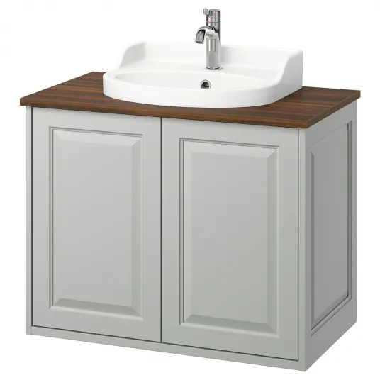 IKEA TÄNNFORSEN / RUTSJÖN Masca+usi/lavoar/baterie, gri/maro aspect nuc, 82x49x76 cm
