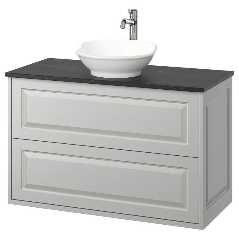 IKEA TÄNNFORSEN / VÄSTERSJÖN Masca lavoar+sertare/lavoar/baterie, gri/negru aspect marmura, 102x49x79 cm
