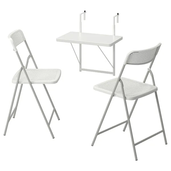 IKEA TORPARÖ Masa pentru perete+2 scaune, ext, alb/alb/gri, 50 cm