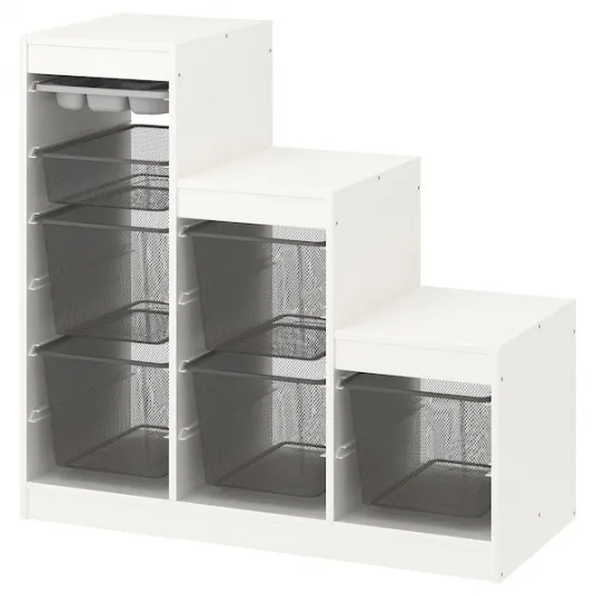 IKEA TROFAST Ansamblu depozitare+cutii/tava, alb gri/gri inchis, 99x44x94 cm