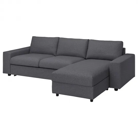 IKEA VIMLE Canapea 3 locuri cu sezlong, cu brate late Gunnared/gri mediu