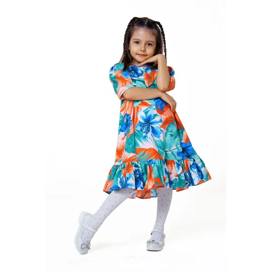 Ilona Andreoiu, Rochie cu model tropical Cute Yasmin, Rosu, Alb, Albastru glaciar, 98 CM