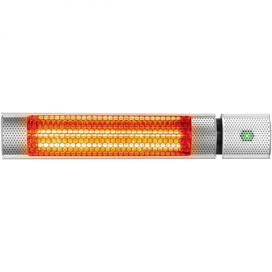 Incalzitor terasa VORTEX VO4241, 2000W, aluminiu Caracteristici: Buton Pornire/ Oprire; Nivele de caldura: L1/ L2; Distanta minima fata de podea (m): 2,4; Control prin telecomanda; Lungime cablu (m): 1,9 ± 0,1; Material: aluminiu; Culoare: argintiu; Specificatii tehnice: Tensiune de alimentare: 220-240V~/ 50-60 Hz; Trepte de incalzire (W): 1000/ 2000; Unghi montare: 30°-45°; Clasa de electrosecuritate: I; Clasa de protectie la umezeala: IP55; G.N./ G.B.(kg): 1,9/ 2,5; Dimensiune produs (cm): 62,3x10,6x7,25; Dimensiune ambalaj (cm): 68,5x17x14,2.