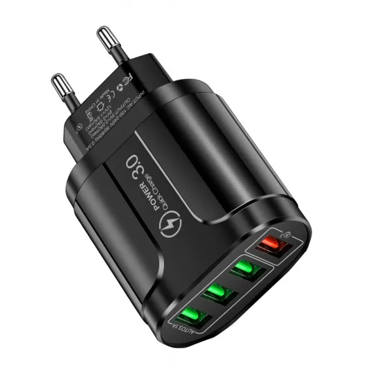 Incarcator Retea, Vaxiuja®, 4x USB Qualcomm 3.0, Ultra Fast Charge, 5V/3.1A, Universal, Cip Protectie Temperatura Ridicata, Negru