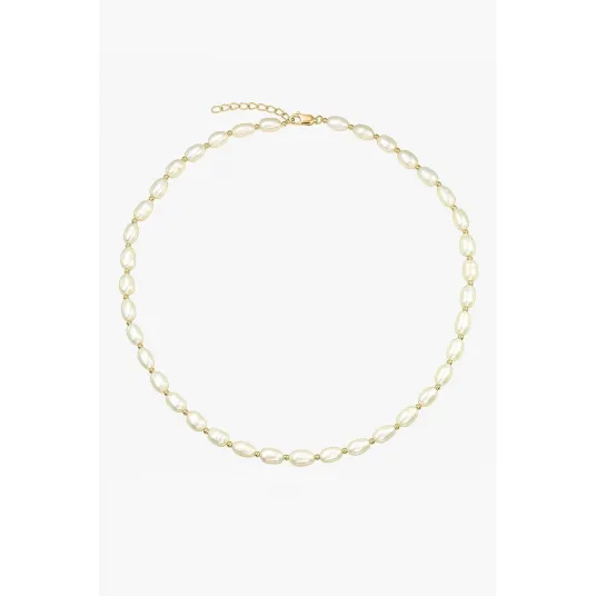 INDIRA, Colier scurt placat cu aur de 14K si perle naturale, Alb, Auriu