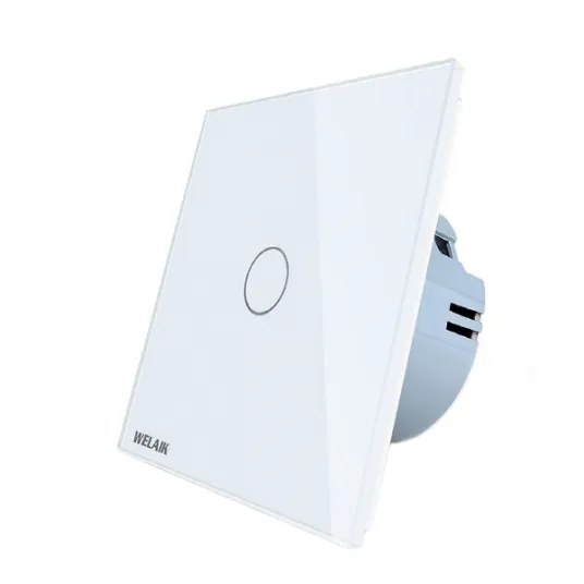 Intrerupator simplu cu touch Welaik A1911CW, panou din sticla, Alb