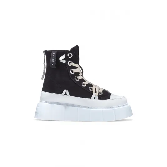 INUIKII, Pantofi sport flatform, din material textil, Alb, Negru, 38