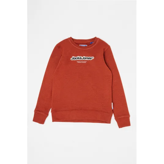 Jack & Jones, Bluza de trening din amestec de bumbac cu model logo, Alb fildes, Maro scortisoara, Negru stins, 164 CM