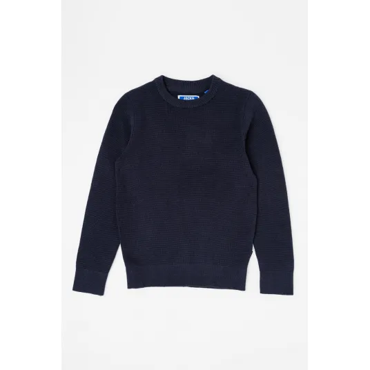 Jack & Jones, Pulover din amestec de bumbac organic cu decolteu la baza gatului, Bleumarin, 152 CM