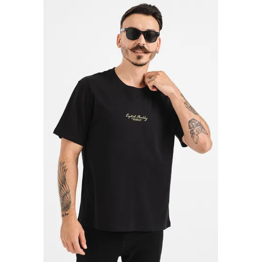 Jack & Jones, Tricou cu decolteu la baza gatului si imprimeu, Negru, Galben pai, SJack & Jones, Tricou cu decolteu la baza gatului si imprimeu, Negru, Galben pai, S223045833223045833