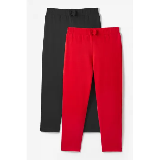 June, Set de pantaloni din bumbac cu detaliu funda - 2 Perechi, Rosu, Negru, 104 CM