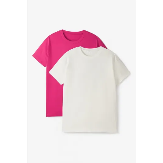 June, Set de tricouri din amestec de bumbac - 2 piese, Fucsia, Alb optic, 128 CMJune, Set de tricouri din amestec de bumbac - 2 piese, Fucsia, Alb optic, 128 CM223508103223508103