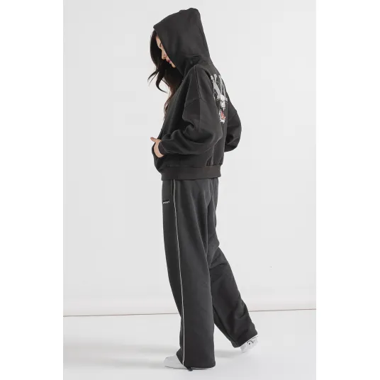 Karl Kani, Hanorac din fleece cu model grafic pe partea din spate, Negru, S