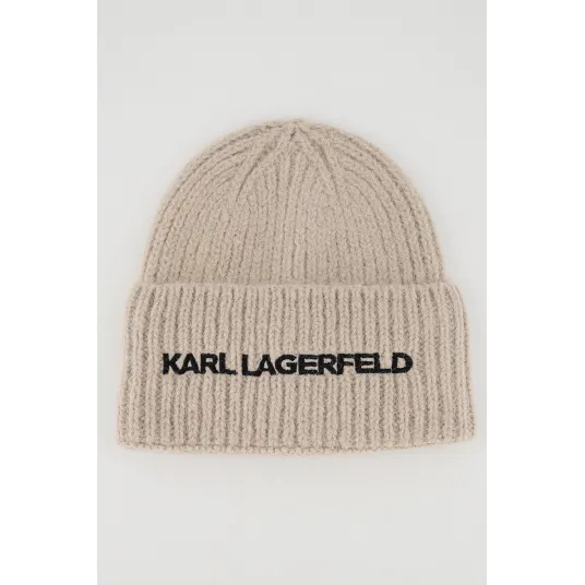 Karl Lagerfeld, Caciula din amestec de lana cu logo brodat Essential, Bej deschis