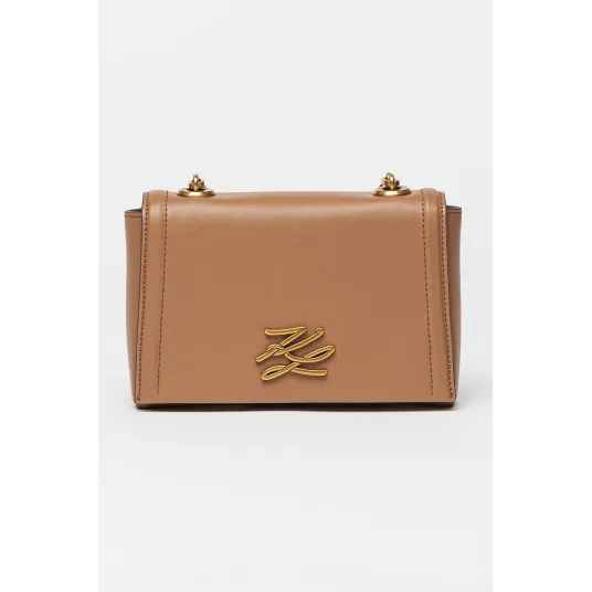 Karl Lagerfeld, Geanta crossbody din piele cu bareta din lant Autograph, Maro fango