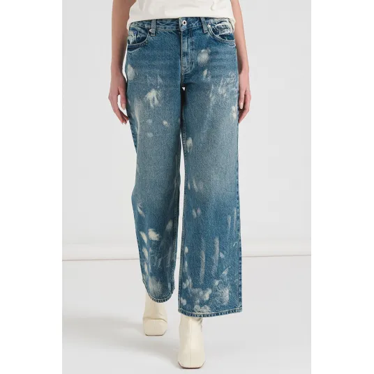 KARL LAGERFELD JEANS, Blugi cu croiala ampla si detalii cu aspect decolorat, Albastru prafuit, W29-L30