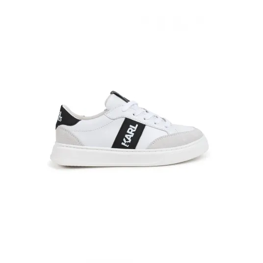 KARL LAGERFELD KIDS, Pantofi sport de piele si piele intoarsa, Negru, Alb, Alb murdar, 34 EU