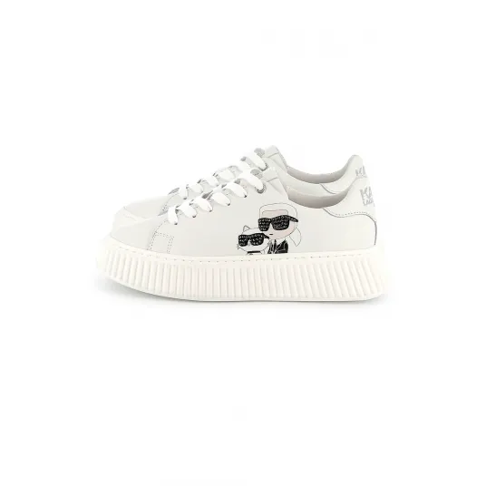 KARL LAGERFELD KIDS, Pantofi sport din piele cu logo, Alb murdar, 39 EU