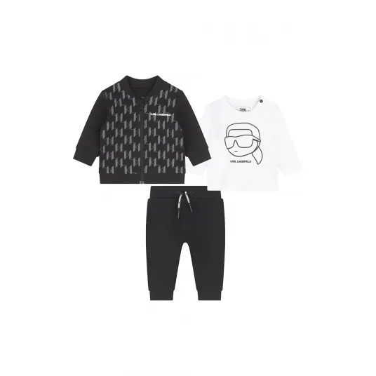 KARL LAGERFELD KIDS, Set de imbracaminte sport - 3 piese, Alb, Negru stins, 60 CM