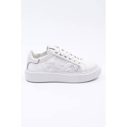 Karl Lagerfeld, Pantofi sport de piele cu insertii de plasa, Alb, 40