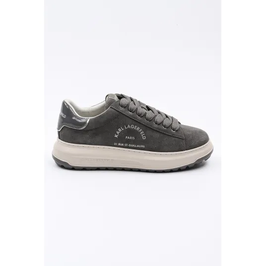 Karl Lagerfeld, Pantofi sport din piele cu garnituri din piele ecologica, Gri inchis, 44