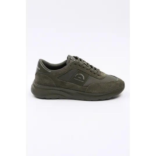 Karl Lagerfeld, Pantofi sport low-cut cu garnituri din piele intoarsa, Kaki, 44