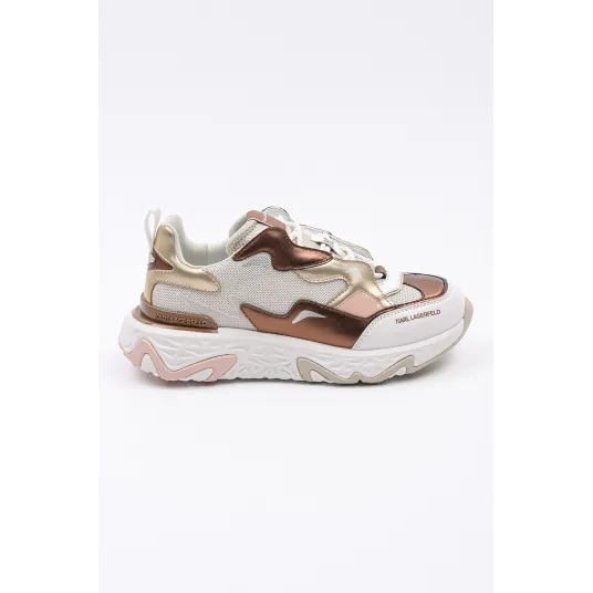 Karl Lagerfeld, Pantofi sport masivi cu garnituri din piele, Auriu, Alb murdar, Bronz, 38