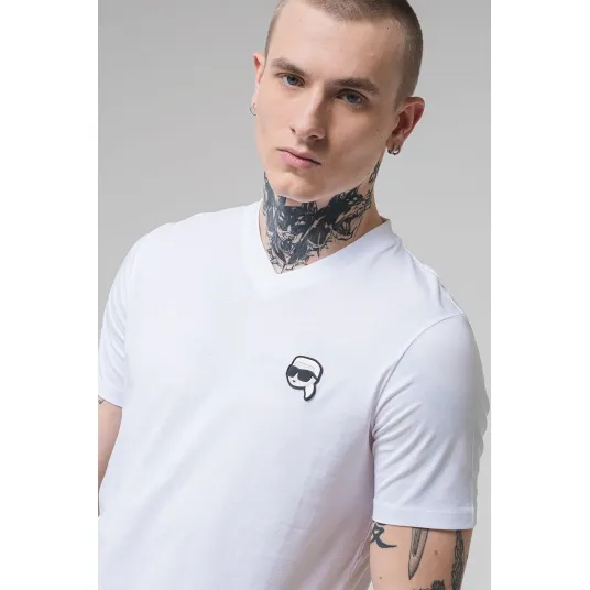 Karl Lagerfeld, Tricou cu decolteu in V, Alb, S