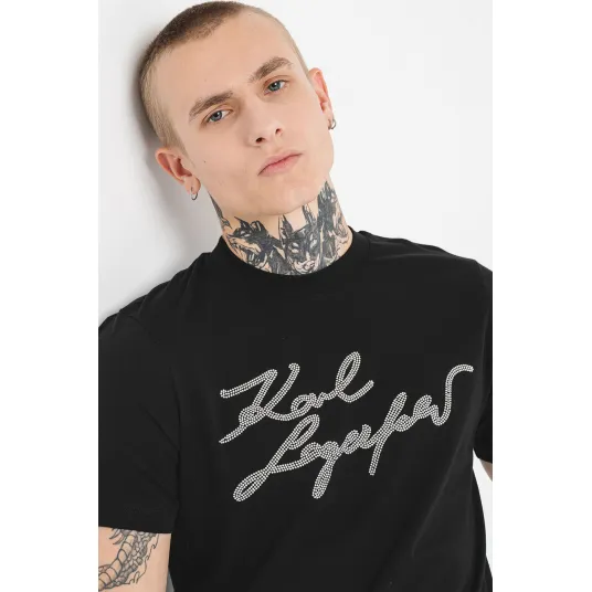 Karl Lagerfeld, Tricou cu decolteu la baza gatului si logo, Negru, Argintiu, SKarl Lagerfeld, Tricou cu decolteu la baza gatului si logo, Negru, Argintiu, S223833867223833867