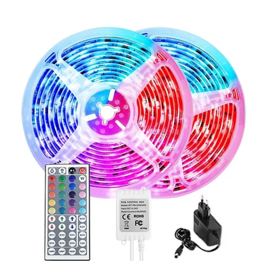Kit banda LED RGB, 20m (2 x 10 m), VIELLAN, Telecomanda cu 44 de Butoane, Intensitate Lumina Reglabila, 12V, Multicolor