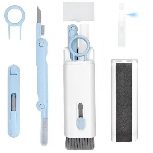 Kit de curatare multifunctional 7 in 1, cu pena de curatare 3 in 1, pentru casti, tastatura, laptop, telefon, monitor PC, albastru