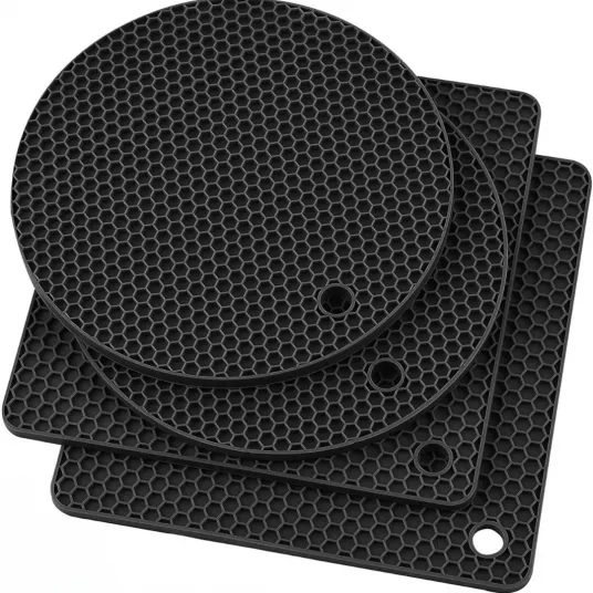 Setul include patru piese in total: doua suporturi patrate si doua rotunde, in tonuri moderne de culoare Negru . Usor de curatat si versatile, aceste accesorii de bucatarie devin rapid indispensabile in orice spatiu culinar.