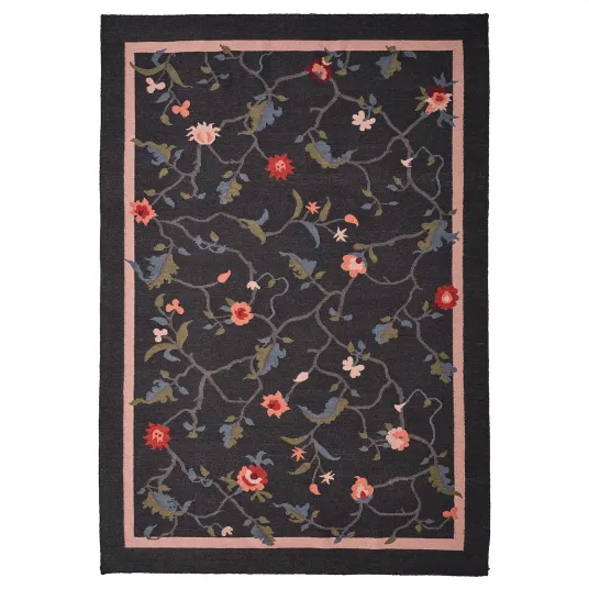 IKEA KLOCKBUSKE Covor, tesatura plata, gri inchis/floare, 160x230 cm