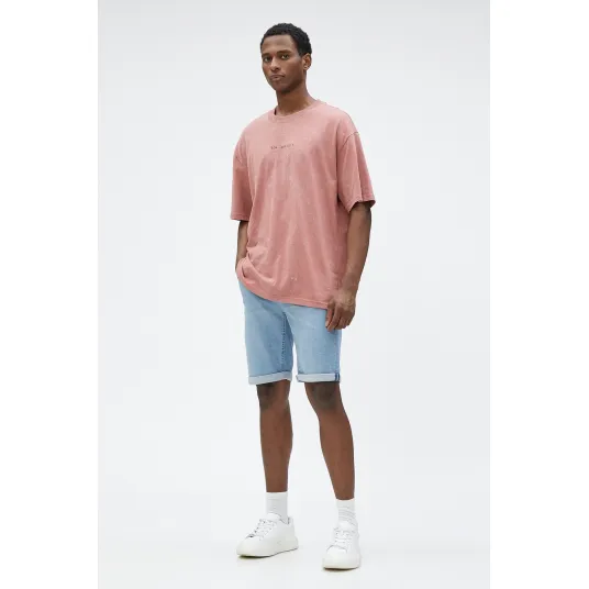 KOTON, Blugi scurti cu manseta pliata, Albastru deschis, 29