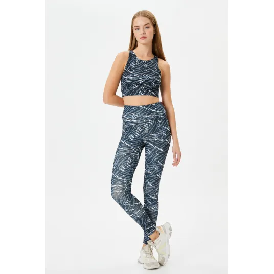 KOTON, Bustiera sport cu imprimeu abstract, Negru, Albastru prafuit, S