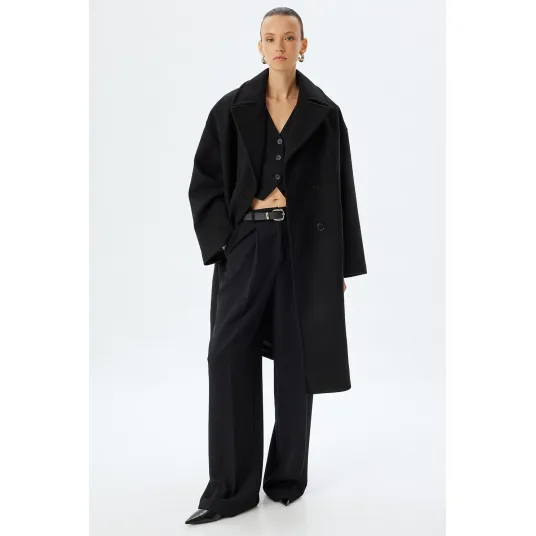 KOTON, Palton supradimensionat cu model cu doua randuri de nasturi, Negru, 34