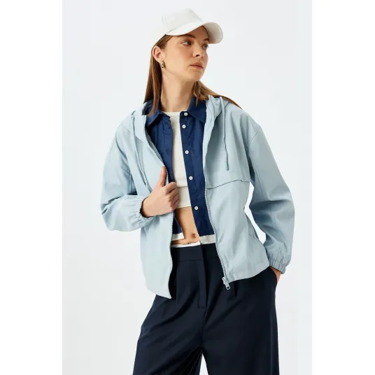 KOTON, Pelerina de ploaie cu buzunare oblice, Albastru pal, 42