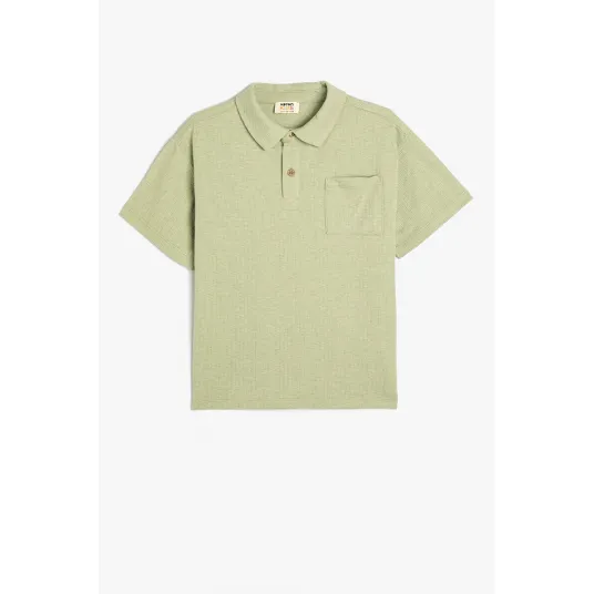 KOTON, Tricou polo cu buzunar pe piept, Verde fistic, 134-140 CM