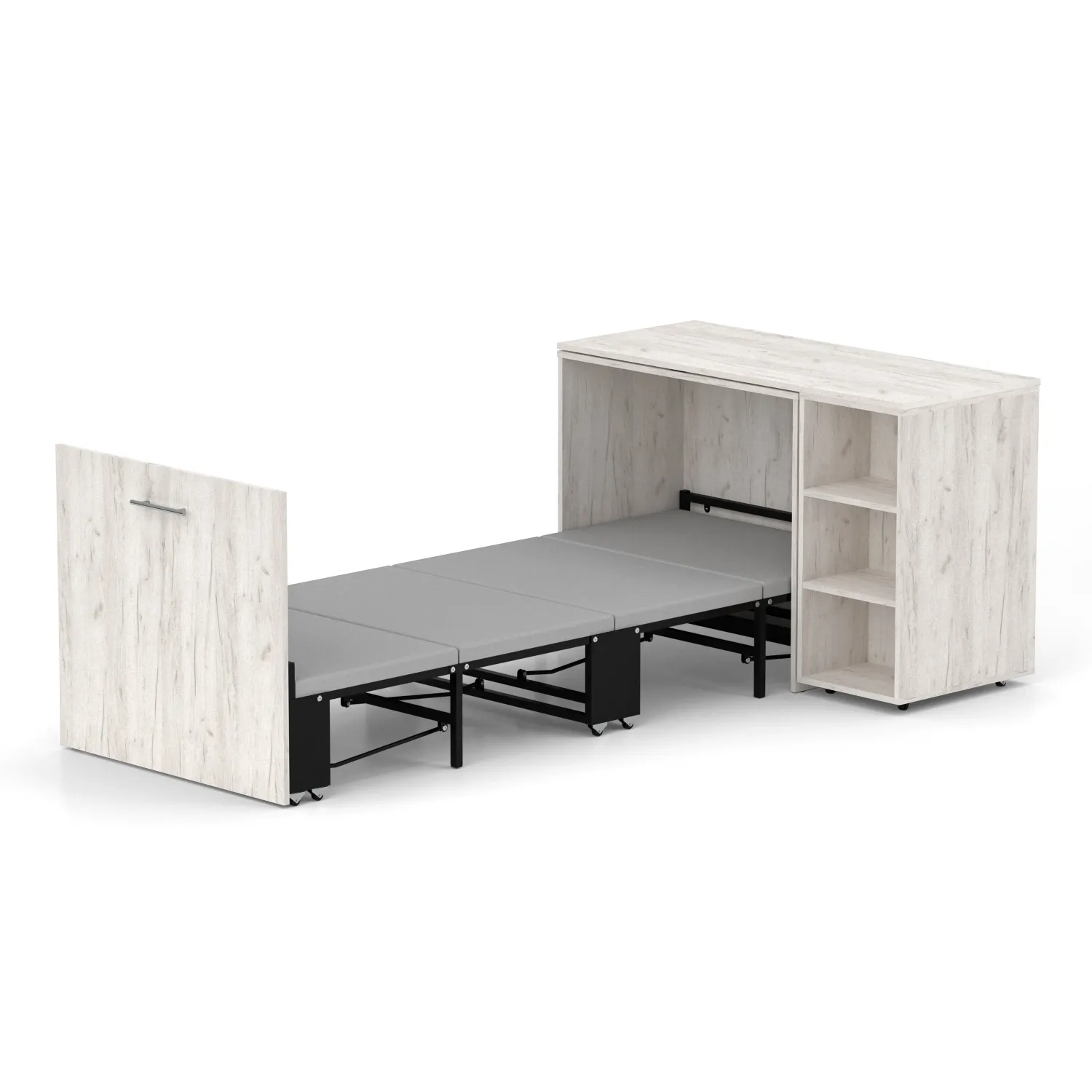 Кровать-трансформер + Письменный стол + Тумба + Комод Knap Knap Sirim-C2 (4 в 1) / (Дуб крафт белый)