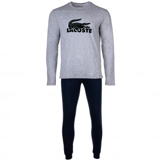 Lacoste, Pijama din amestec de modal cu logo de catifea, Gri, Albastru inchis, LLacoste, Pijama din amestec de modal cu logo de catifea, Gri, Albastru inchis, L223809204223809204