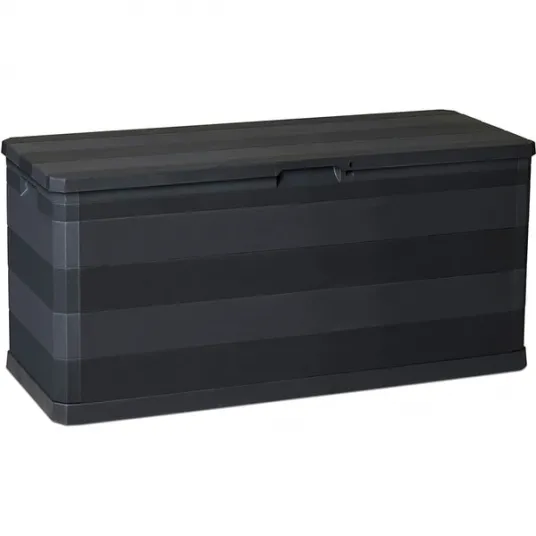 Masurand 117 x 45 x 56 cm, aceasta cutie de depozitare de gradina neagra ofera spatiu amplu pentru a depozita o varietate de articole. Indiferent daca trebuie sa depozitati perne, jucarii de exterior, ghivece sau accesorii pentru gratar, aceasta cutie spatioasa le poate gazdui pe toate. Capacitatea sa de XX litri permite o depozitare convenabila si acces usor la bunurile dvs. oricand aveti nevoie de ele.